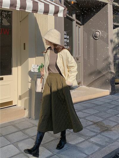 スカート レディース あたたかい ロング丈 ミディ 膝下 キルティング Aライン 防寒 ウエストゴム ゆったり 秋 冬 キルティン フレアスカート ロングスカート ボトムス フレア ロング ミモレ丈