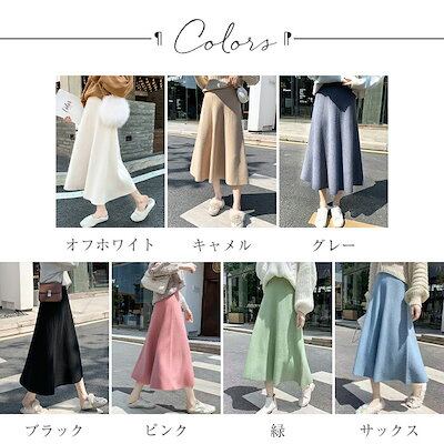 ニットスカート レディース 秋冬 ロング きれいめ ボトムス スカート フレアスカート ロングスカート ニット フレア ミモレ ミモレスカート Aライン ハイウエスト ウエストゴム 無地 伸縮 洗え
