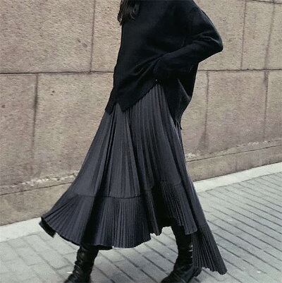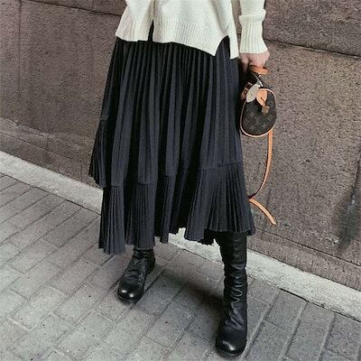プリーツスカート レディース きれいめ スカート ロング 春 秋 冬 夏 ボトムス ロングスカート フレアスカート ハイウエスト ウエストゴム フィッシュテールスカート 膝下 ミモレ丈 ロング丈 無地