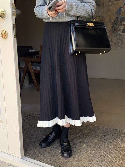 ニットスカート プリーツスカート レディース スカート ボトムス ロングスカート マキシスカート ニット プリーツ ロング ウエストゴム 秋冬 あったか ゆれゆれ ふんわり 柔らか 体型カバー 細見
