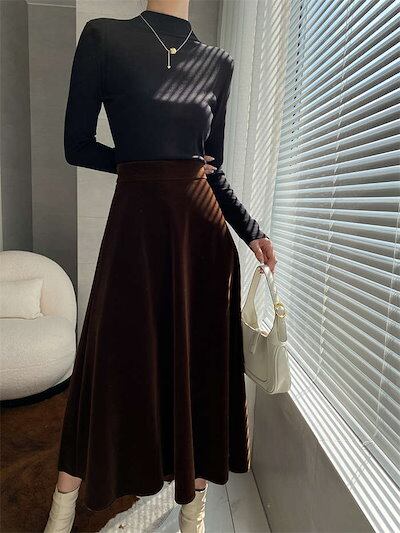 ベルベットスカート レディース スカート ボトムス フレアスカート ロングスカート ベロアスカート ハイウエストスカート ベロア ベルベット フレア ロング丈 秋冬 ハイウエスト Aライン 落ち感 体