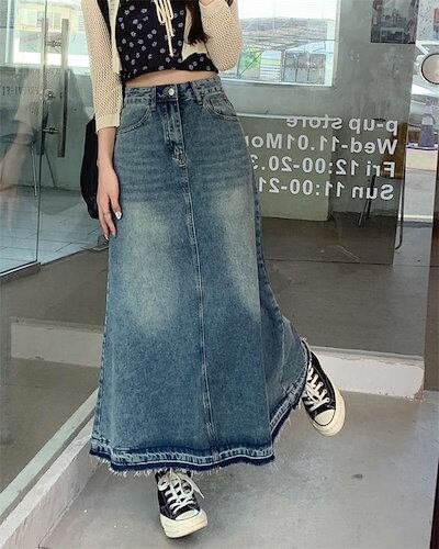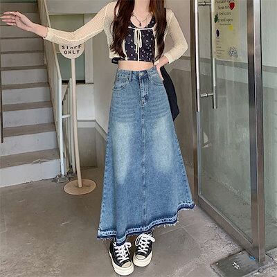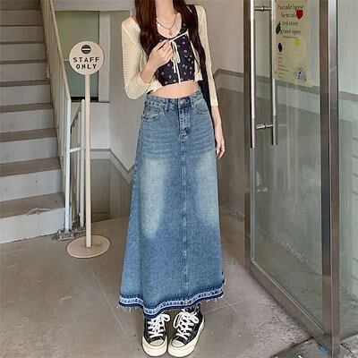 デニムスカート ロング スカート レディース ボトムス きれいめ ロングスカート タイトスカート タイト ロング丈 Aライン マキシ丈 マキシスカート ハイウエスト ポケット付き 春夏 秋冬 ダメー