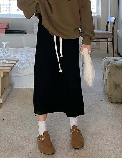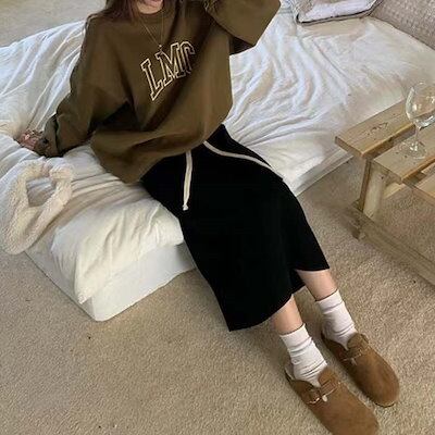 ロングスカート レディース ロング丈 着痩せ ボトムス Iライン スウェット 春 秋 裏起毛 秋冬 スカート スリット ボア あったか 秋冬 あったか 暖か 防寒 起毛 柔らかい かわいい ウエストゴ