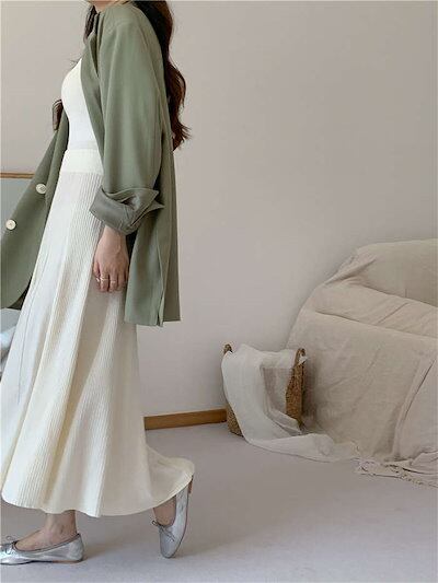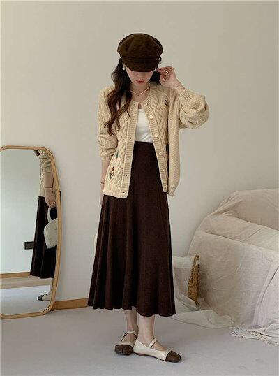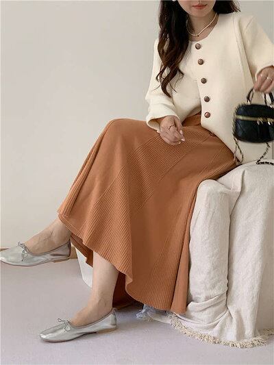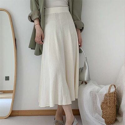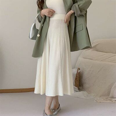 スカート レディース ロング 秋 冬 きれいめ ボトムス ニット ウエストゴム リブ Aライン フレア ニットスカート 無地 ロング丈 ロングスカート 厚手 あったか 秋冬 シンプル ストレッチ 体型
