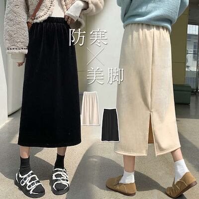 タイトスカート 裏起毛 秋冬 ロング丈 スリット入り ミモレ丈 レディース ボトムス 防寒 暖か 裏ファー スウェット スエット ロングスカート ストレート Iライン リブ リブスカート 裏起毛スカー