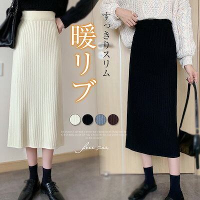 スカート ニットスカート リブニットスカート ロング丈 リブ 秋冬ウエストゴム レディース 冬 タイトスカート バックスリット 厚手ニット シンプル 細見え あったかい きれいめ カジュアル ゆったり