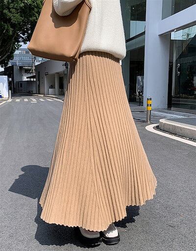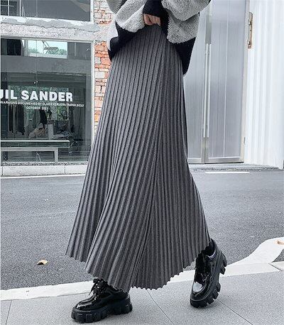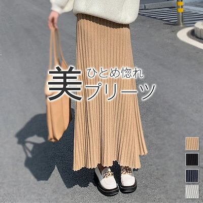 ニットスカート プリーツスカート レディース 秋 冬 春 ニットロングマキシスカート ウエストゴム ボトムス 厚手 暖かい Aライン ニットプリーツスカート 防寒 カジュアル 大人かわいい フェミニン