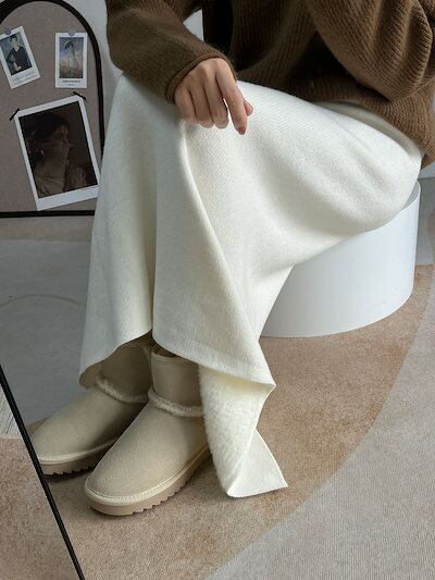 裏起毛 スカート ニットスカート スカート 裏起毛 レディース 秋冬 ニット カットソー ロングスカート ロング丈 ボトムス ウエストゴム バックスリット ゆったり 体型カバー 着?せ 柔らかい 美脚