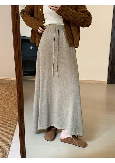 ニットスカート レディース 秋 冬 春 ニット ロングマキシスカート フレアスカート ウエストゴム ボトムス 肌触りいい Aラインロングスカート フレア カジュアル 大人かわいい フェミニン きれいめ