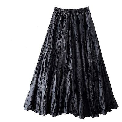 スカート プリーツスカート レディース ワッシャー加工 ロング丈 Aライン フレアスカート ふんわり 光沢感 ボリューム クリンクル 春夏 秋冬 体型カバー こなれ感 フェミニン おしゃれ 通勤 お出