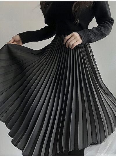 プリーツスカート 秋冬 ロングスカート レディース ボトムス マキシ丈 ロング丈 フレアスカート ロンスカ 無地 プリーツ ウエストゴム ハイウエスト 秋冬 マキシスカート Aライン フレア カジュア