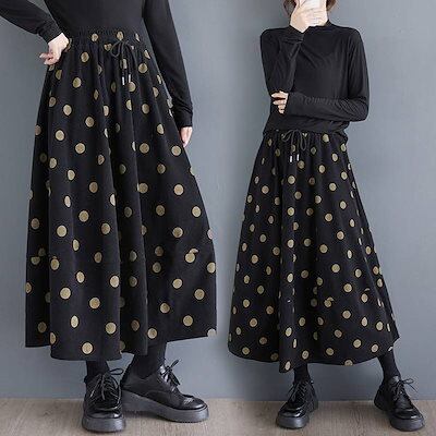 スカート ドット柄 ロング 秋冬 レディース 黒 コーデュロイ 冬 フレアスカート ドット 水玉 フレアスカート ボトムス 秋 秋物 ロングスカート ミモレ丈 カジュアル シンプル きれいめ オシャレ