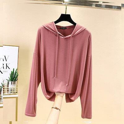 フード付きTシャツ 長袖 レディース パーカー 薄手 春秋 Tシャツ ゆったり カットソー モダール 長袖Tシャツ 柔らかい トップス フード付き カジュアル 着痩せ レディース トップス 春秋 女性