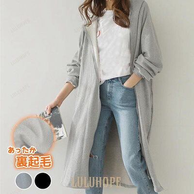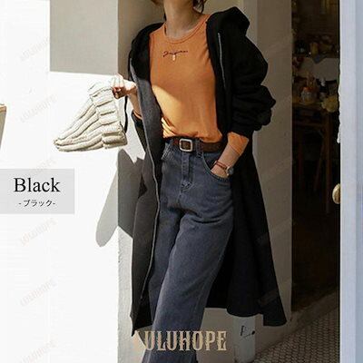 パーカー レディース 秋 コート アウター 裏起毛 防寒 厚手 暖かい 大きいサイズ ゆったり さらさら フーディ ジップアップ 前開き 冬 黒マウンテンパーカー