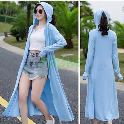 UVパーカー レディース 無地 長袖 ロング丈 アウター カジュアル UVカット 薄手 フード付き 紫外線対策 通勤 春夏 きれいめ おしゃれ