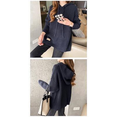 ニットトップス レディース セーターパーカー タイドシャツ ゆったり フード付き プルオーバー 長袖 無地 オシャレ デイリー 20代30代 40代