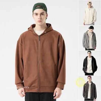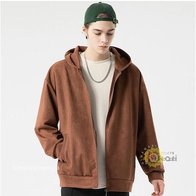 パーカー メンズ レディース スエード 無地 ジップアップ パーカー 上 トップス 長袖 シンプル スウェットパーカー ジップ