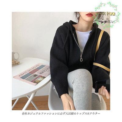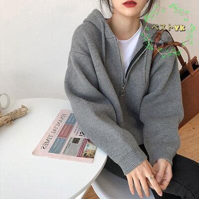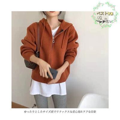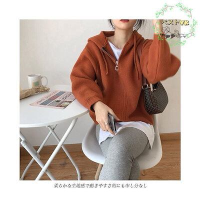ニットパーカー レディース ニットジャケット フード付き 春 秋 パーカー 前開き ジップアップパーカー 厚手 ゆったり カジュアル アウター