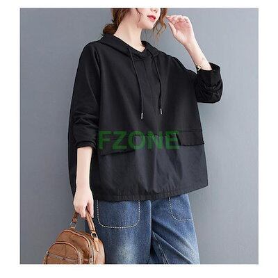 パーカー Tシャツ レディース ブラウス 春秋 フード付き 長袖 シャツブラウス トップス 着心地 切り替え 大人 ゆったり 体型カバー 着痩せ カジュアル 着回し