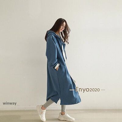 長袖ロングパーカー レディース スウェットパーカーコート アウター ゆるスウェット 裏起毛 フード付き 冬 ゆったり 体型カバー ロング丈 無地 オシャレ 大