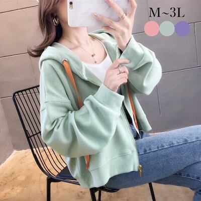 パーカーコート トレーナーコート ショートパーカー スウェット リブ袖 コットン コート アウター ショート丈 レディース 長袖 体型カバー ゆったり オーバーサイズ オシャレ ボダン M L 2L