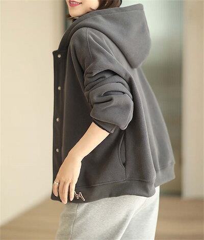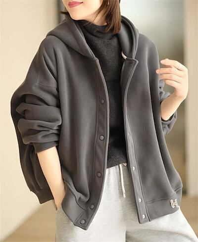 裏起毛 スウェットパーカー ボタンパーカー フード付き コットン 綿 裏ボア 秋冬 大きいサイズ アウター ブルゾン パーカー ジャケット レディース 長袖 スウェット カーディガン ライトアウター