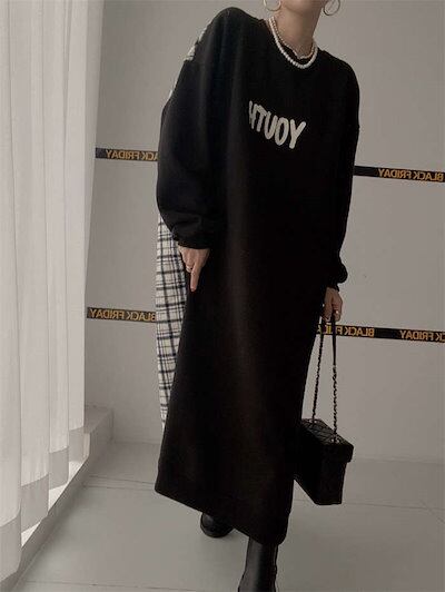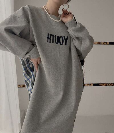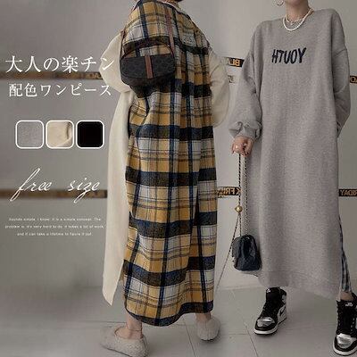 パーカーワンピース レディース 春 秋 ロングワンピース ドッキング ワンピース バイカラー スウェット ワンピース 長袖 大きいサイズ ゆったり ロング丈 切り替えワンピース 体型カバー オーバーサ