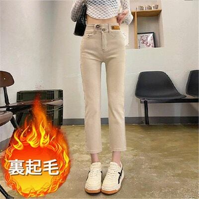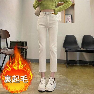 新品 大人気 デニムパンツ レディース ボトムス ハイウエスト 裏起毛 アウトドア 暖い 美脚 九分 美尻 保温 オシャレ カジュアル 秋冬