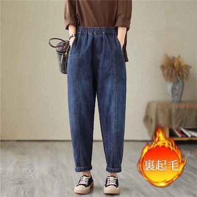 新作セール デニムパンツ レディース 裏起毛 裏ボア 暖かい 秋冬 サルエルパンツ ボトムス 美脚 脚長 保温 防風 おしゃれ カジュアル