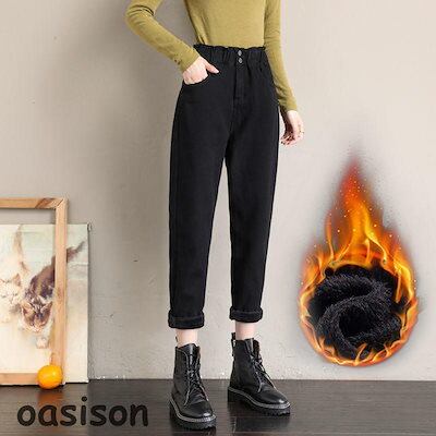 人気商品超目玉 デニムパンツ レディース ジーンズ ウエストゴム サルエル 裏起毛 ジーパン アウトドア 暖い シンプル 保温 オシャレ カジュアル 秋冬