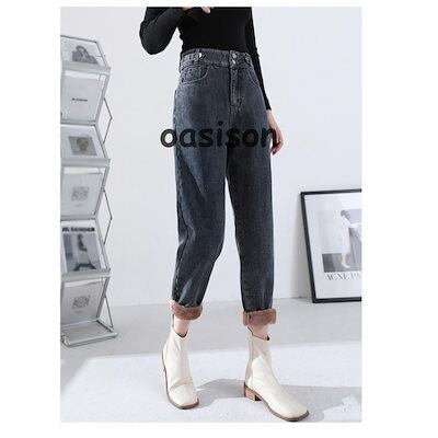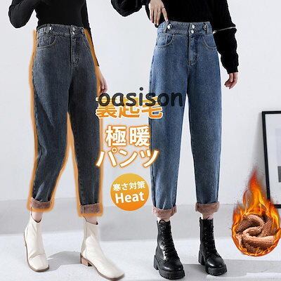 新品 大人気 デニムパンツ レディース ジーンズ 裏起毛 裏ボア ワイドパンツ 厚手 ハイウエスト 秋冬 ジーパン 保温 防寒 暖かい ロングパンツ ゆったり 通勤