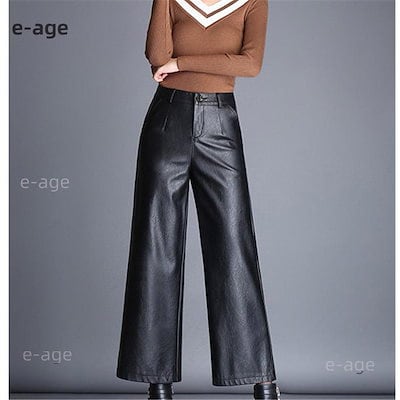 新入庫 レザーパンツ レディース 裏起毛 裏ボア PUパンツ ボトムス ズボン ワイド カジュアル フェイクレザー 無地 細身 防寒 秋冬