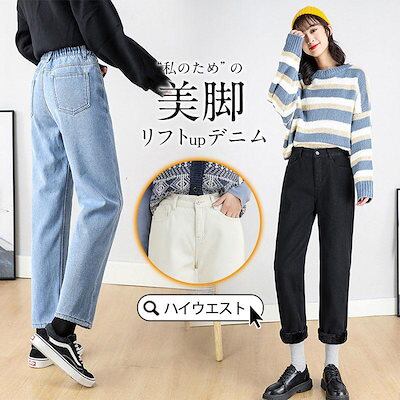新入荷 デニムパンツレディース 秋冬 デニムパンツ 防寒 厚手 ジーンズ ハイウエスト ゆったり 九分丈 裏起毛 裏起毛 チノパン 美脚 カジュアル ズボン 体型カバー