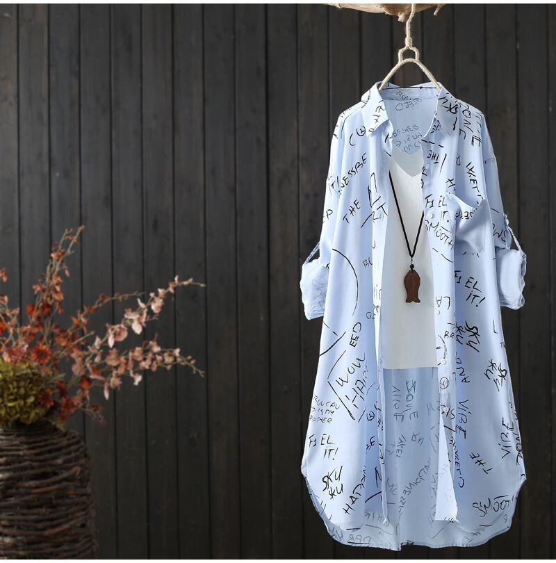 初回送料無料ゆったりシャツプリントカーディガンレディーストップスブラウスファッション