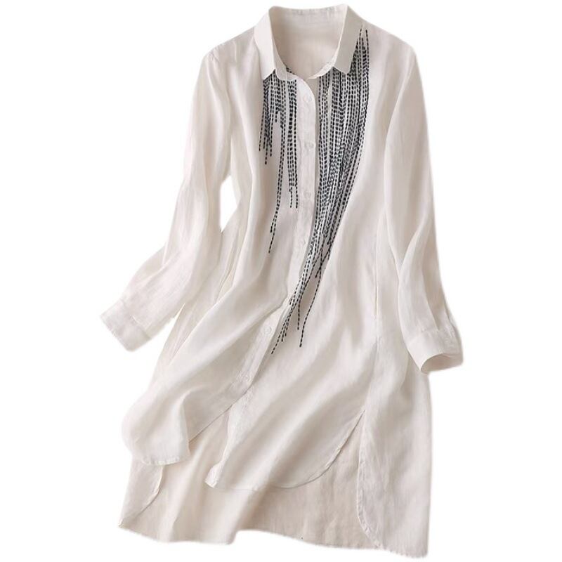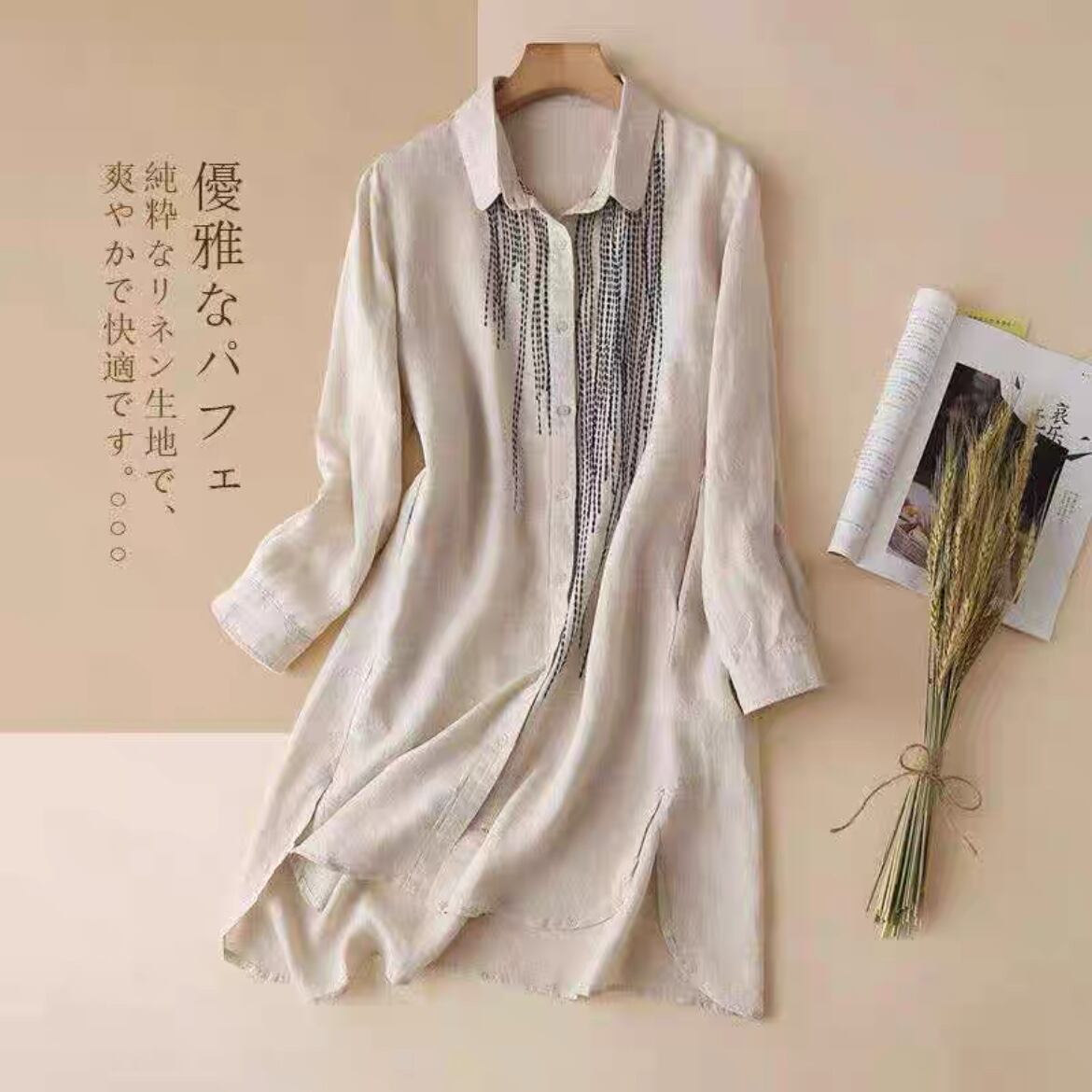 初回送料無料コットンリネンシャツロングトップス長袖シャツレディースファッションサマー